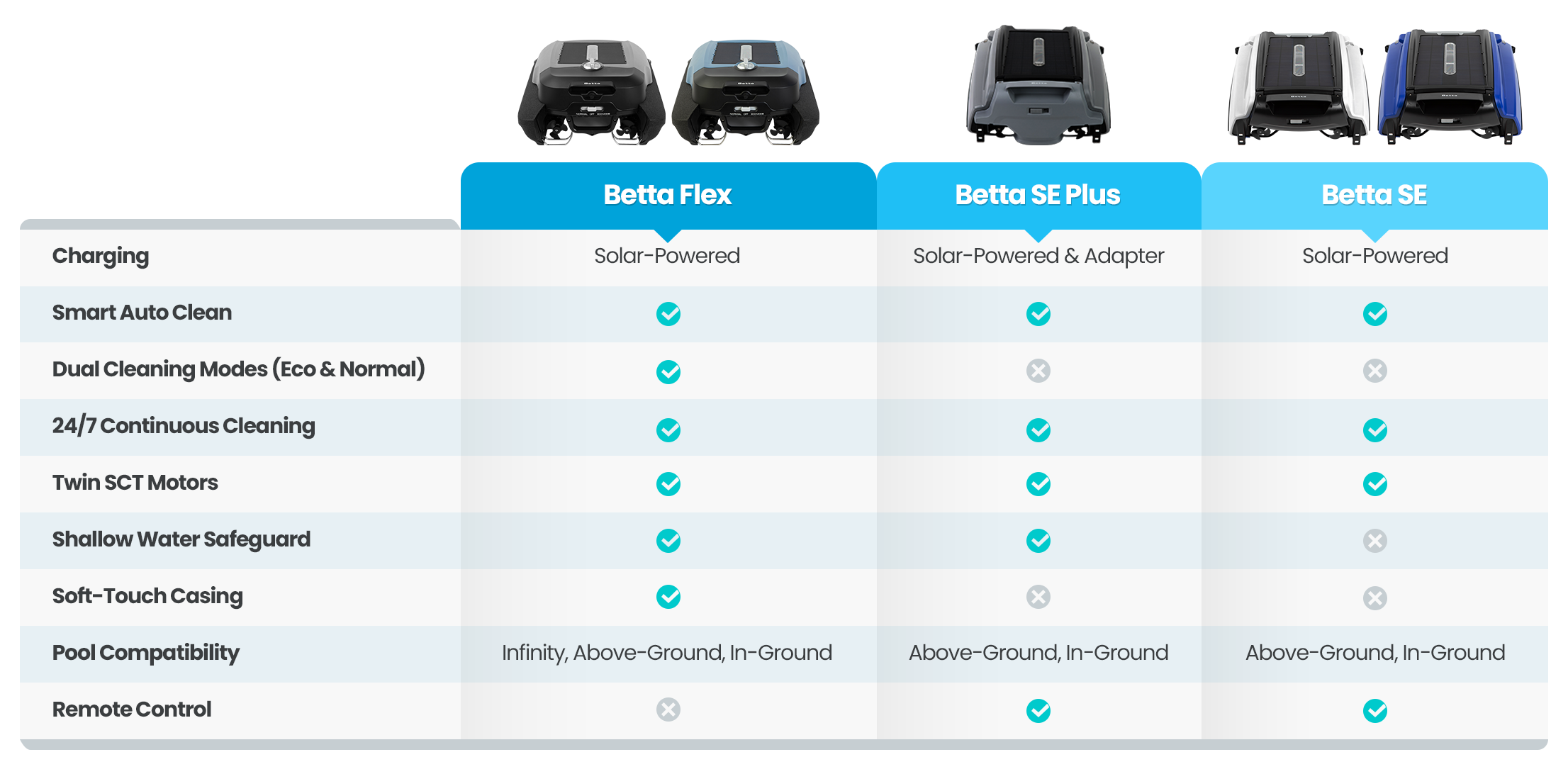 Betta consistently deliver exceptional cleaning performance, whether in saltwater and chlorine pools.